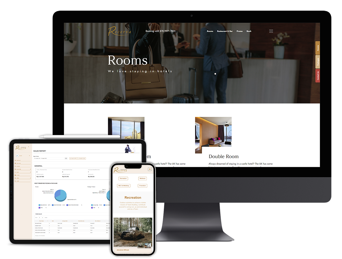 Recerva offers a web homepage for hotels and lodgings without an existing online presence. This homepage significantly enhances long-term brand awareness and visibility. Additionally, it will be automatically indexed on the recerva.id page, improving search engine optimization on Google.